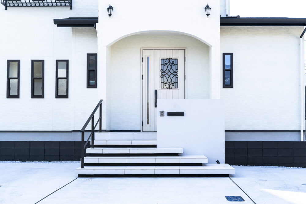 favorite_border お気に入りに追加白を基調としたヨーロッパスタイルの外観。玄関アプローチやサッシはシンプルモダンテイストを取り入れ甘くなりすぎないスッキリとした印象に仕上がりました。