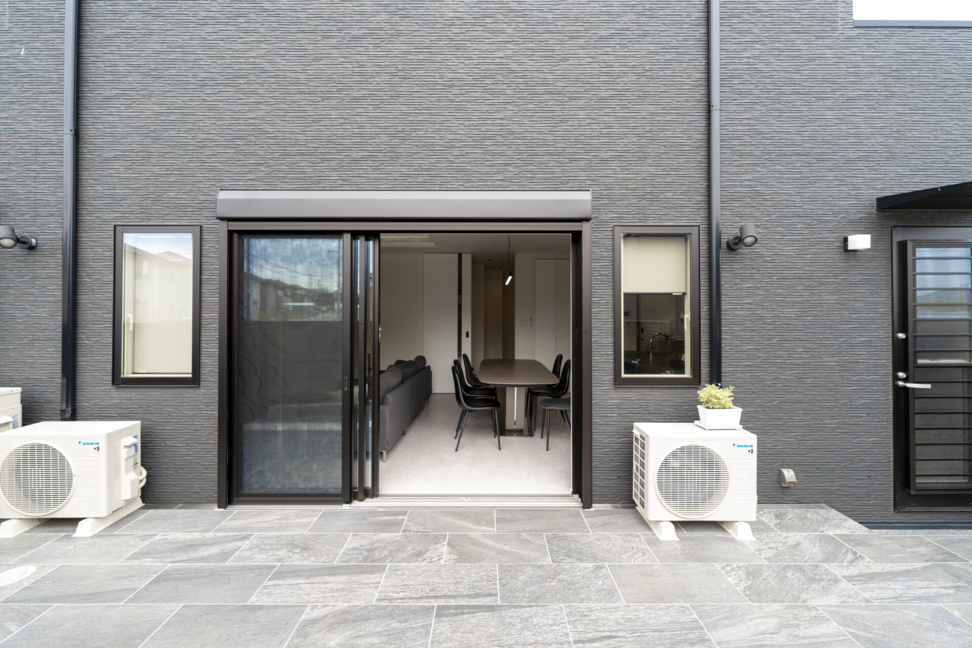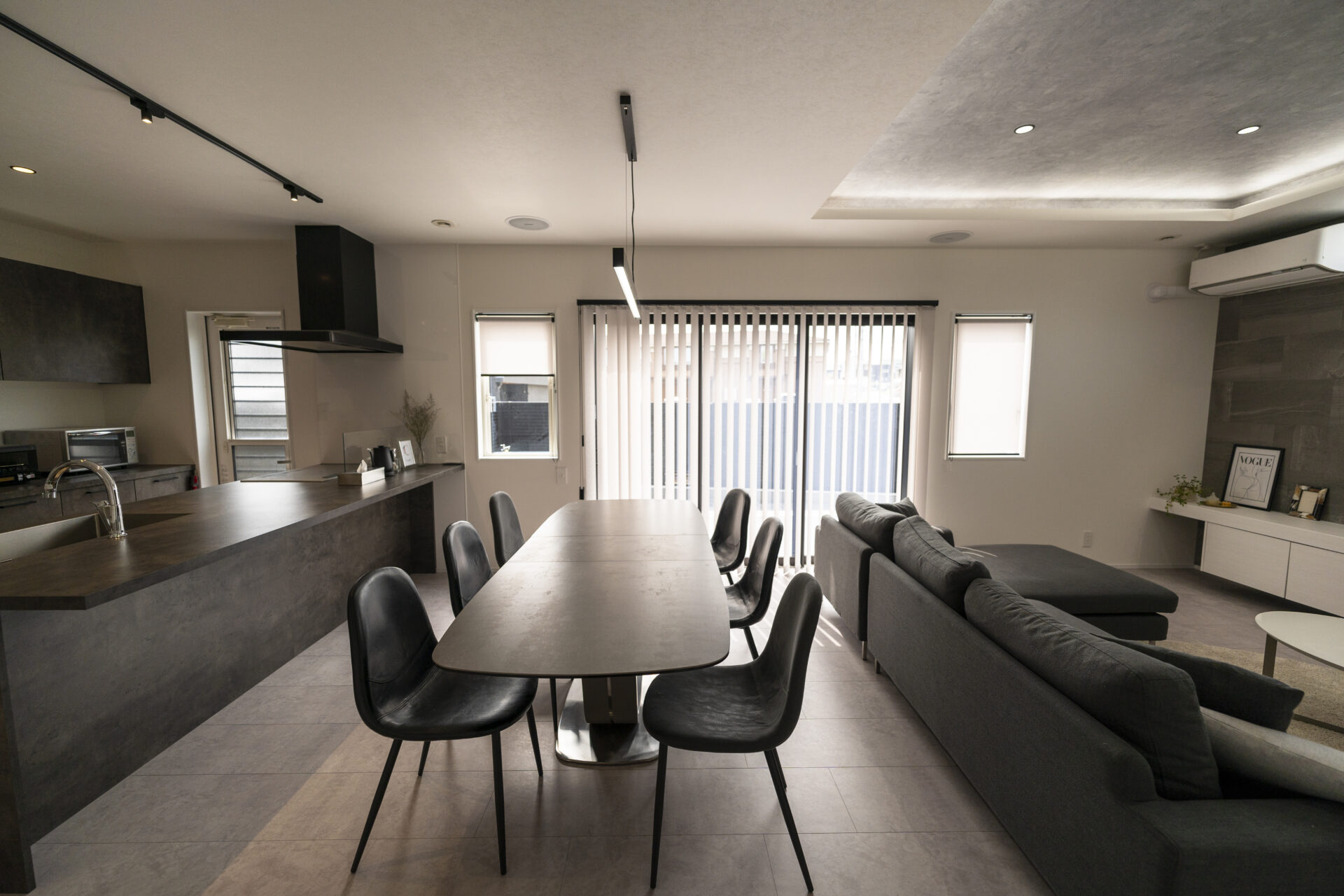 広々としたタイルフロアのLDKは、ひとたび窓を開ければ、LDKのフロアの高さに合わせたタイルテラスが現れます。タイルテラスをLDKの高さに合わせてフラットにすることで、空間につながりが生まれテラスを含む大空間を一体として楽しむことができます。隣家に接しない角地の利点を最大に生かし、アウトドア好きのご家族がBBQを楽しめる一番人気スポットとなりました。