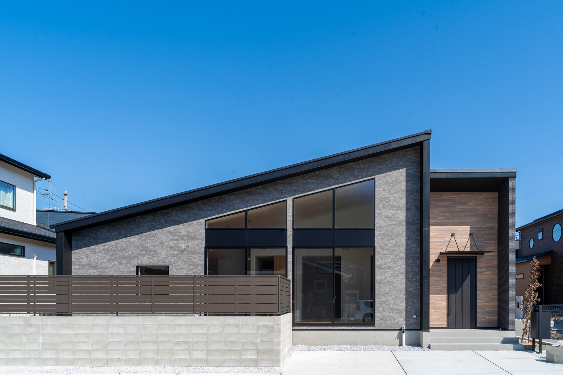 ゆったりとした時間が流れる平屋建ての住まいです。最高天井高4.8mの広々とした空間は、開放感あふれるLDKを主役に、家族の様々な活動を支えます。約22畳のLDKは、日々の暮らしの中心となり、心地よいひとときを提供します。