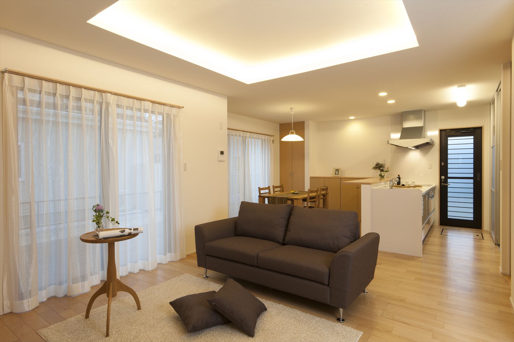 開放的なリビング空間の平屋の家