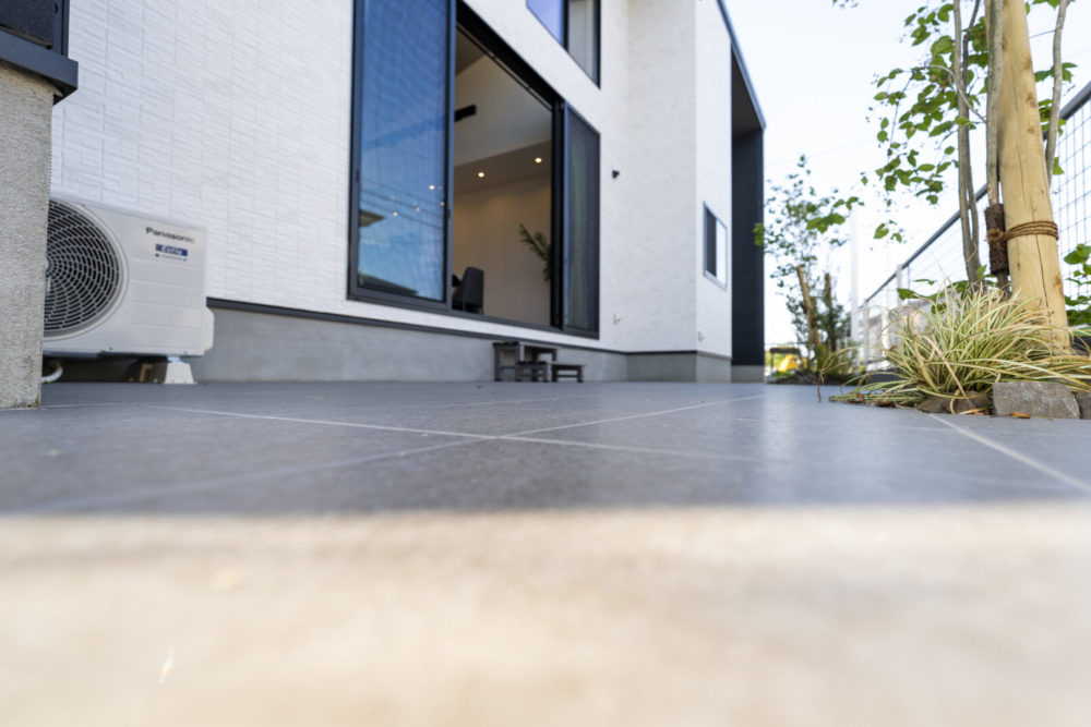 メンテナンス性に優れた約9帖の広々タイルテラス。