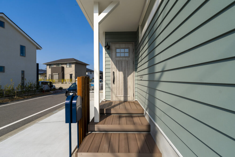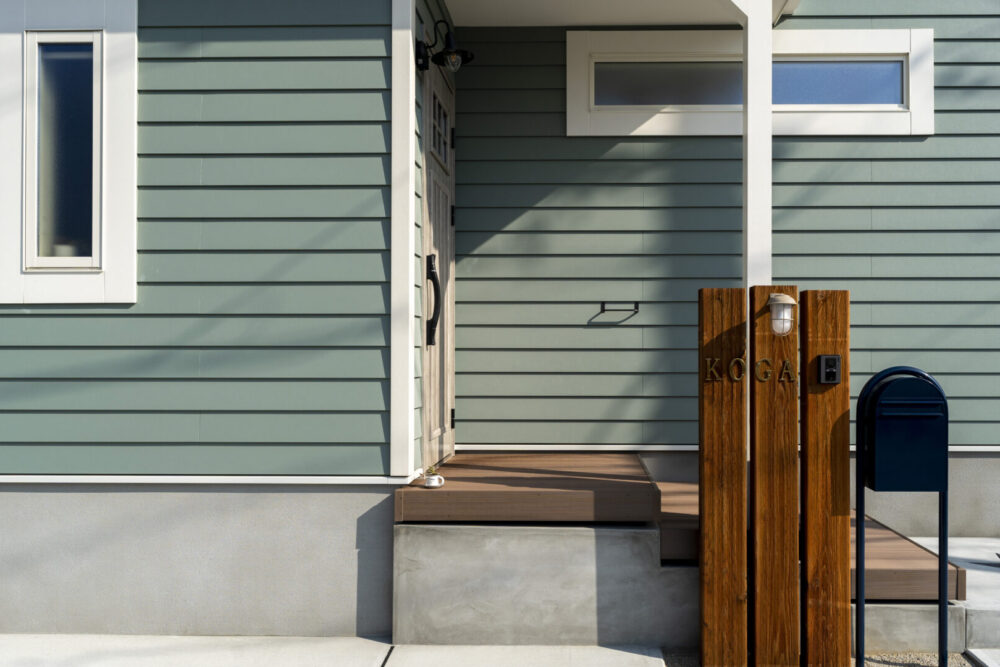 鎧貼り風の外壁材(ラップサイディング)がつくりだす陰影が存在感とカントリーテイストを演出します。
