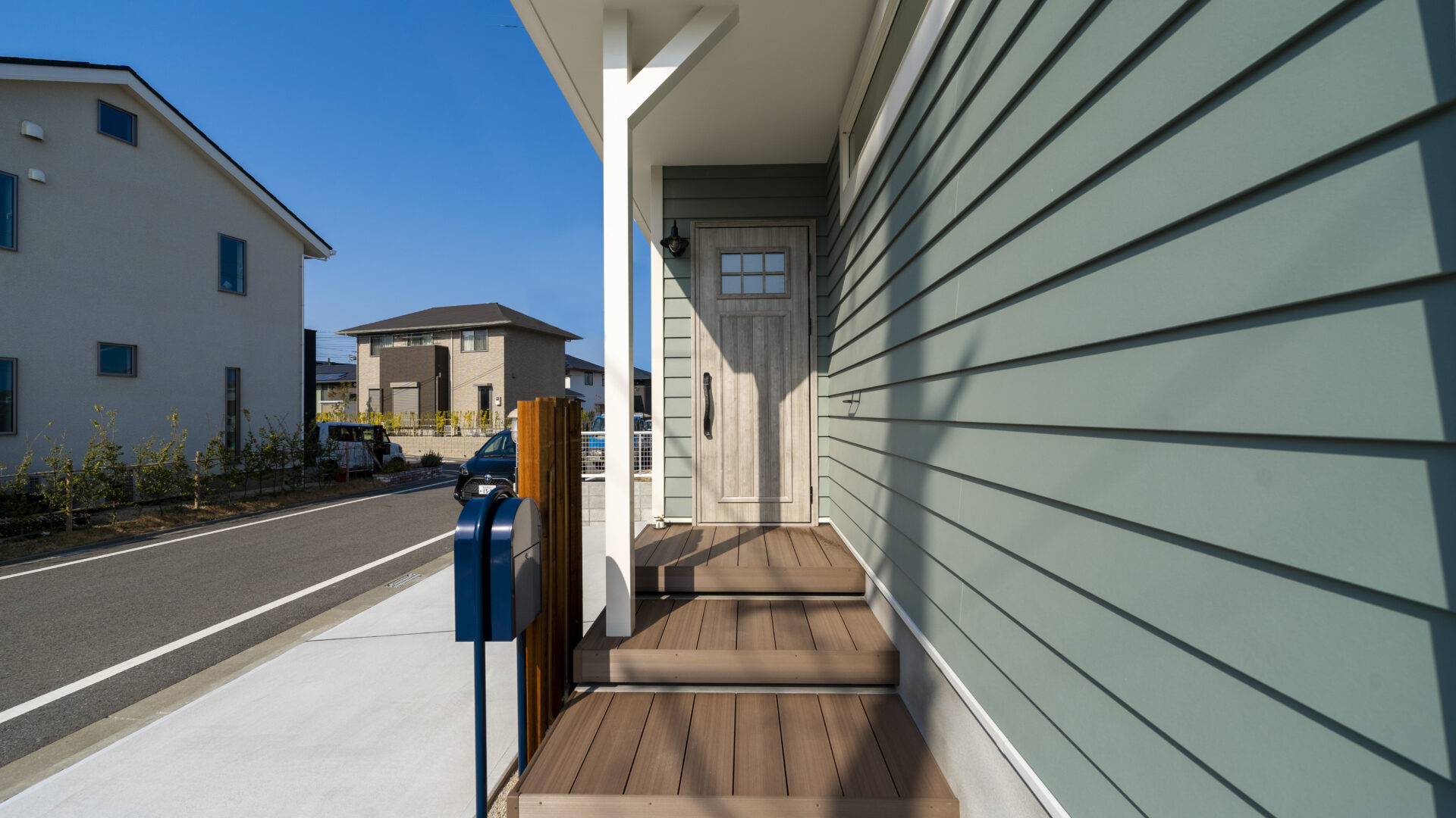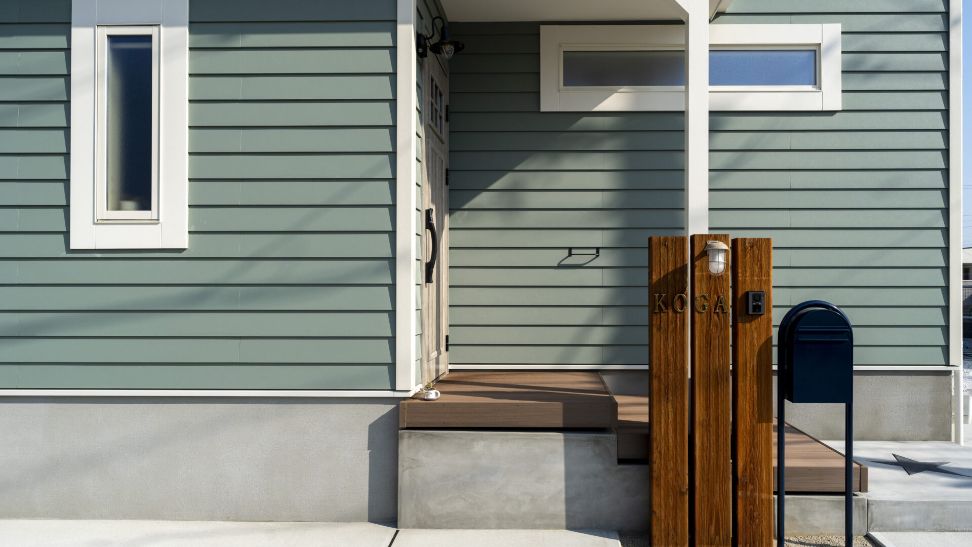 鎧貼り風の外壁材(ラップサイディング)がつくりだす陰影が存在感とカントリーテイストを演出します。