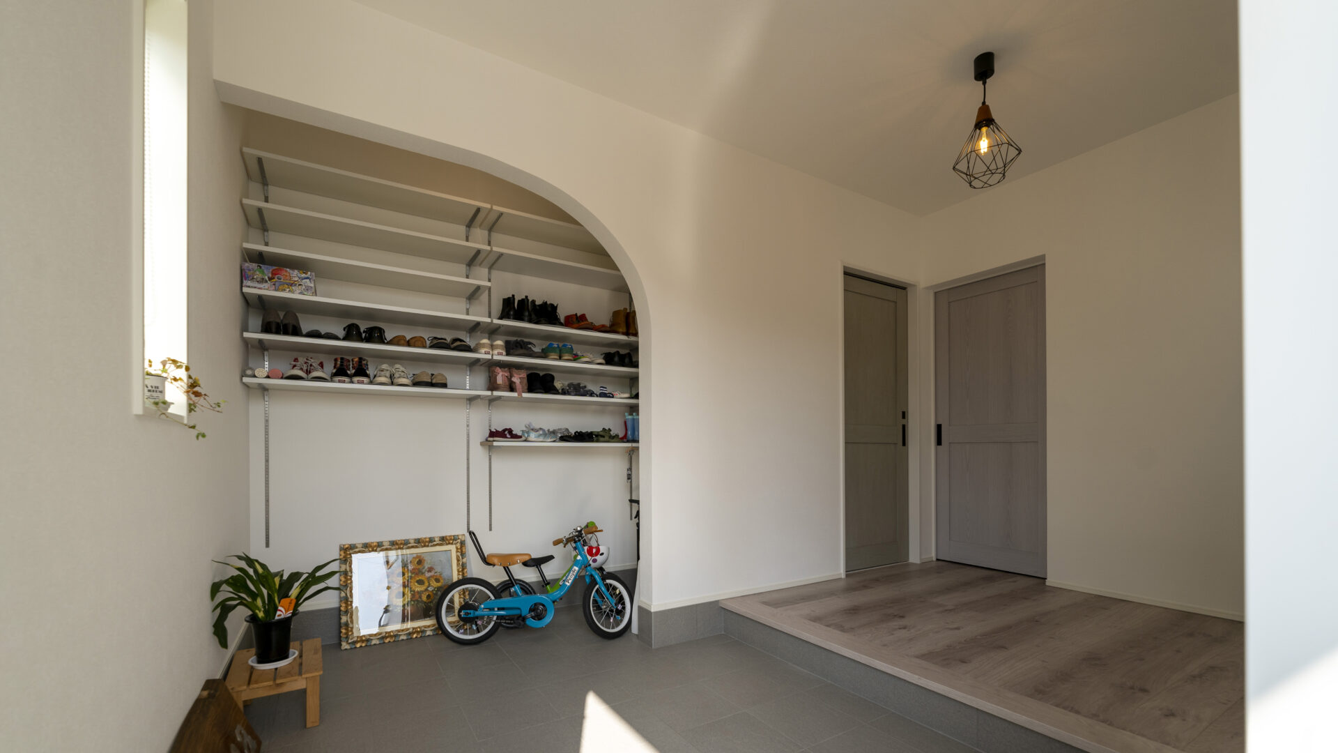ひとたび、玄関を開くと大容量の収納を備えた玄関ホールが出迎えてくれます。