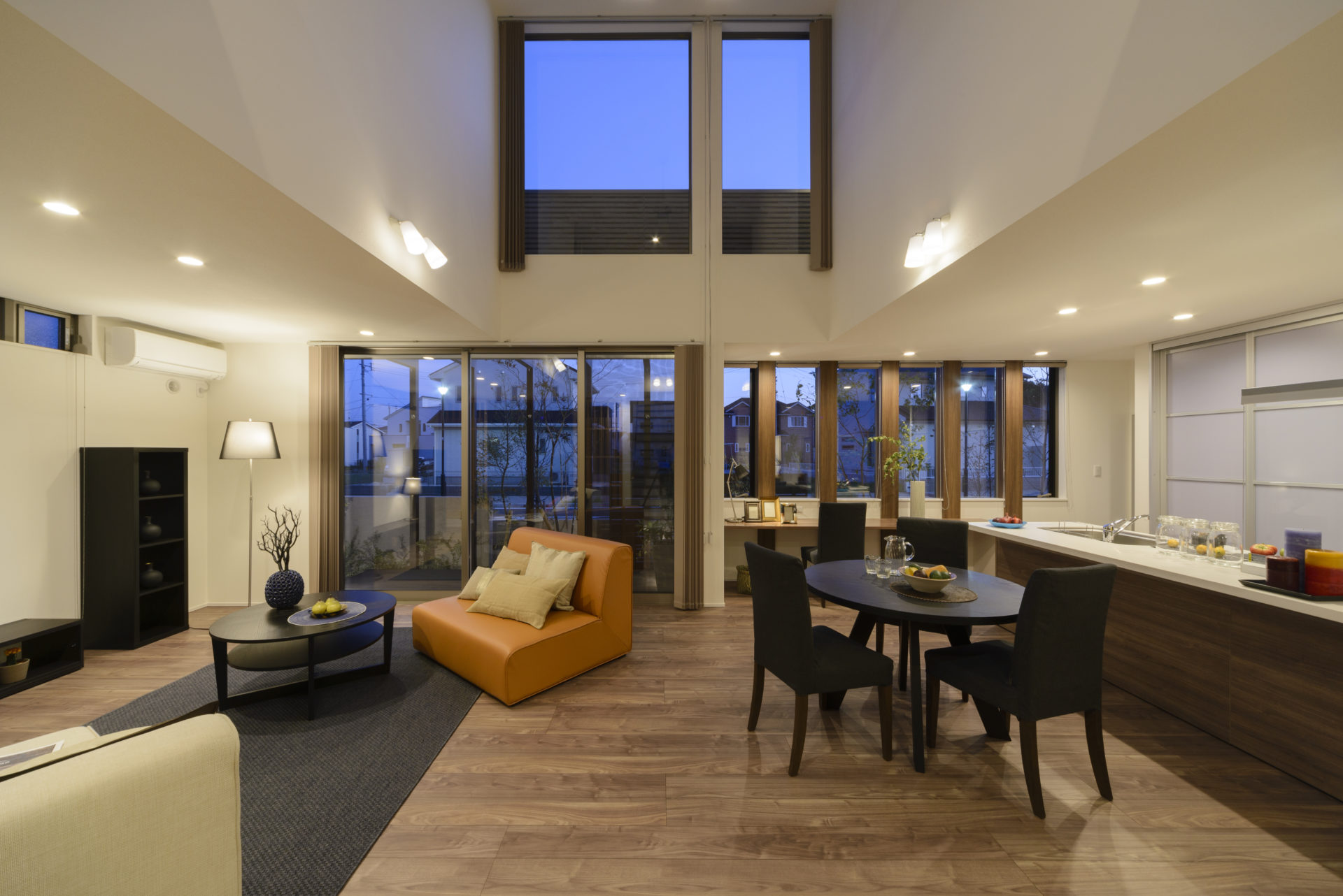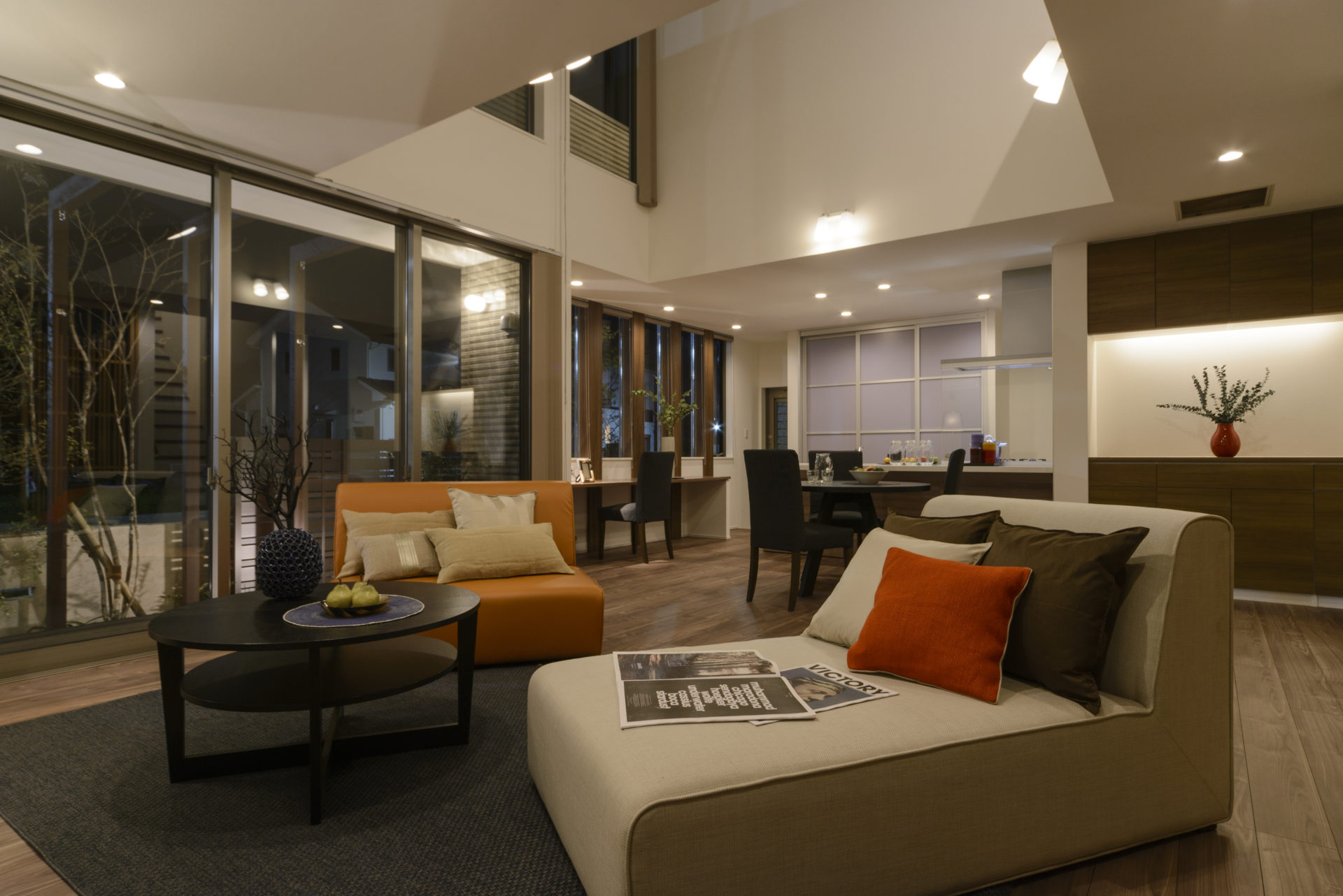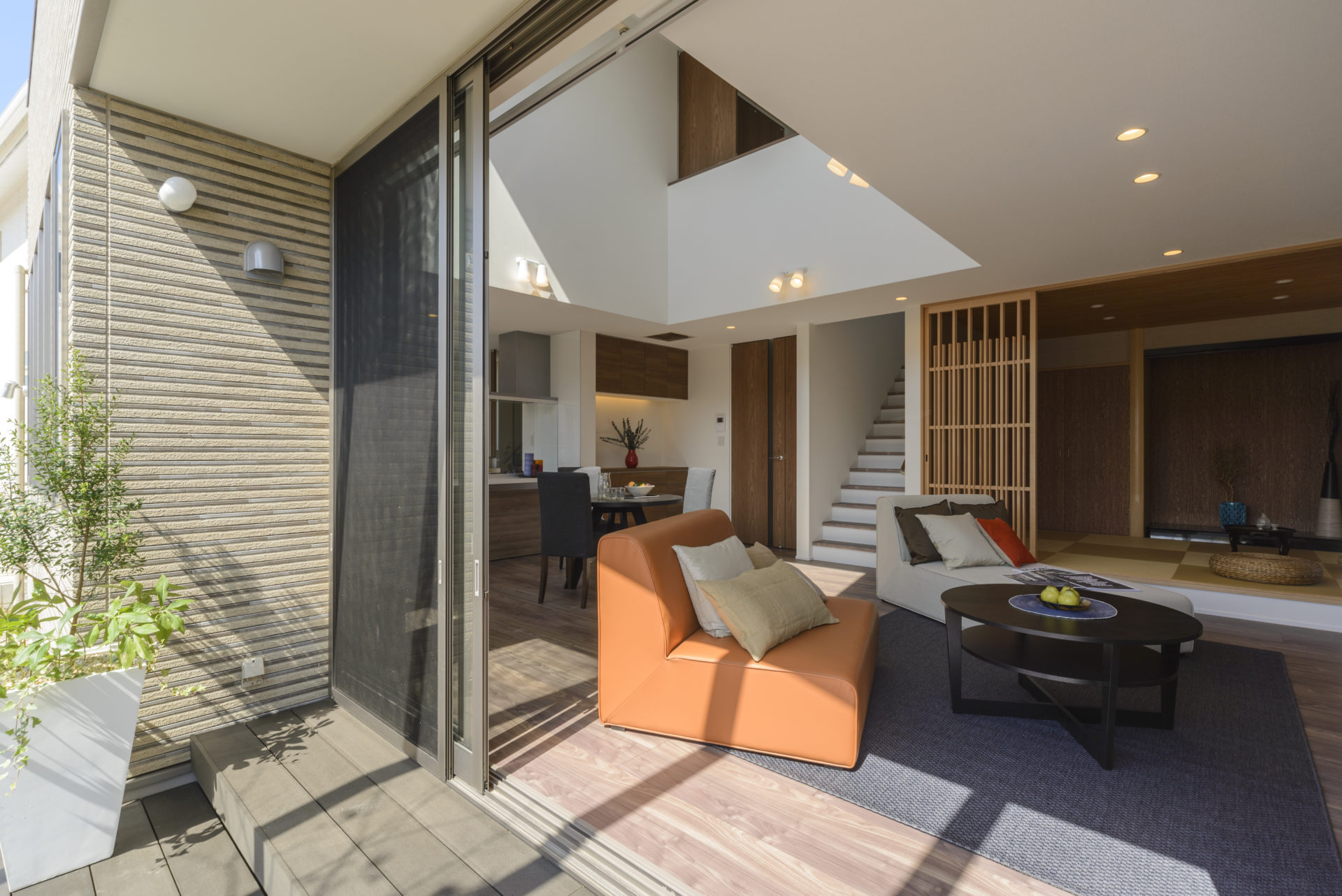 吹き抜けと大開口がつくる、ビルトインガレージの家